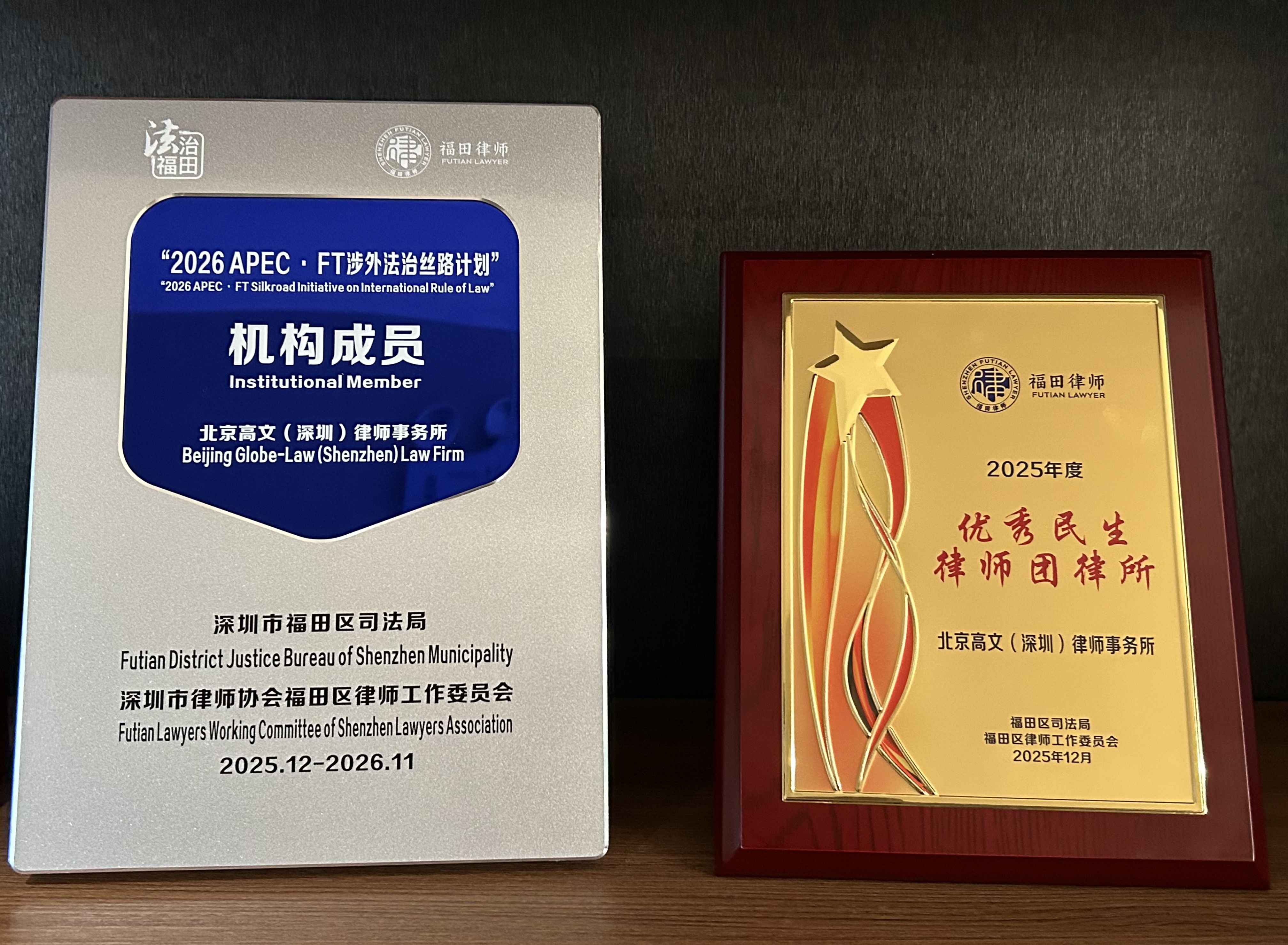 两项荣誉分别彰显专业高度与法律温度,是行业与社会的双重认可。高文深圳办公室未来将以此为契机,持续提升涉外法律服务水平,深化公益法律服务,为服务深圳对外开放大局、推进基层法治建设贡献力量。